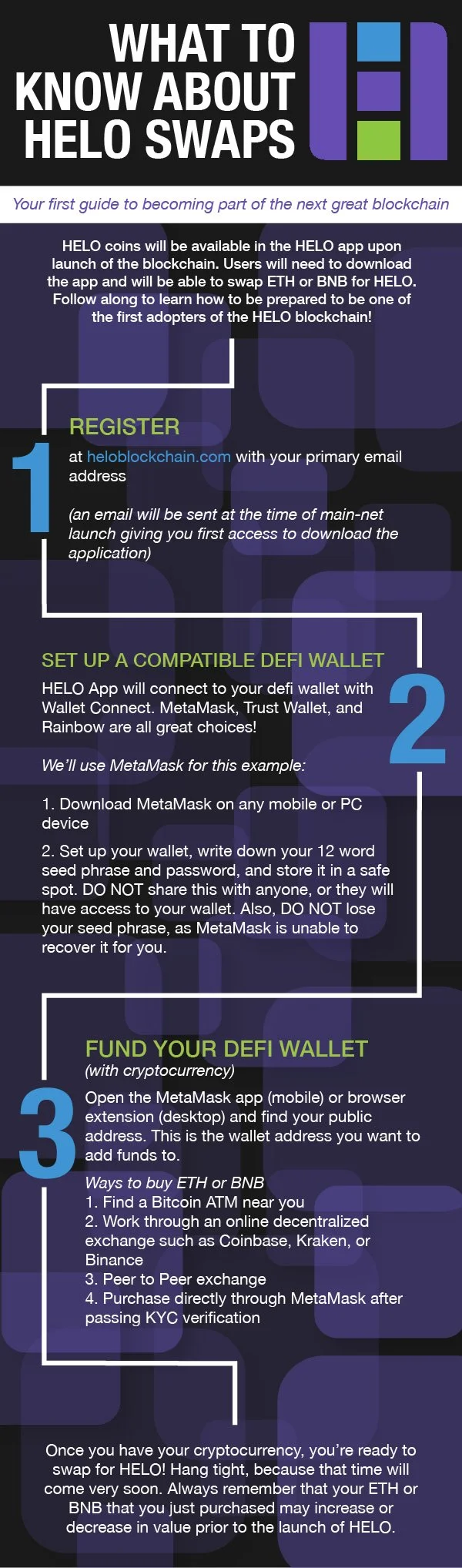 In addition to assisting with digital marketing content, I also help design informative content for the community. This infographic was created in share how users would be able to swap coins upon the launch of the HELO blockchain.